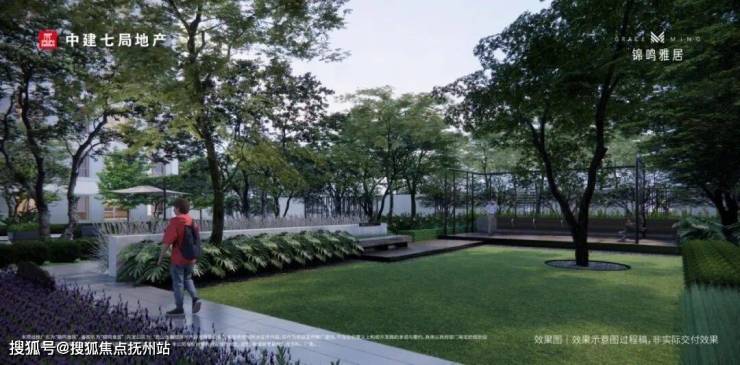 在景观打造上,锦鸣雅居亦针对全龄化进行深度考量,将静奢的品质感与舒适性融入社区景观设计之中。
