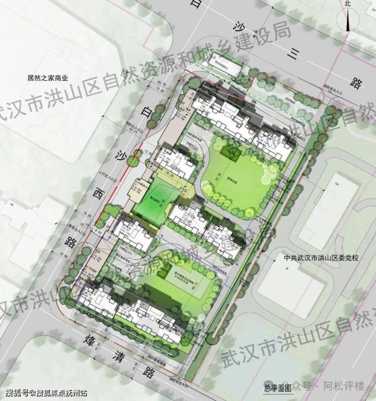 武汉城建白沙嘉序共规划有5栋10-26的住宅,以及少量临街商业。