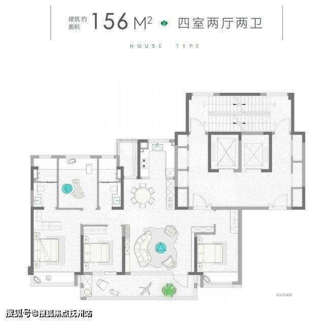建面约156㎡起步户型,4房2厅2卫的舒适配置,约15米南向面宽,4开间朝南一字铺陈,奢阔大横厅与大尺度景观阳台无缝衔接,延伸了视觉的通透性,极具空间感。