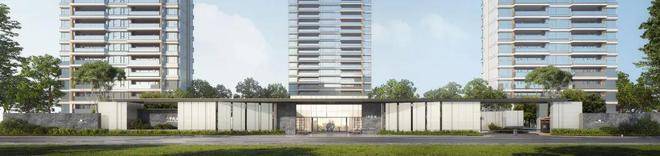 在立面设计上,狮山金茂府将繁复的装饰全部舍弃,再加上金茂的科技住宅无需空调外机设备平台的优势,让整个外立面呈现出现代简约的风格。