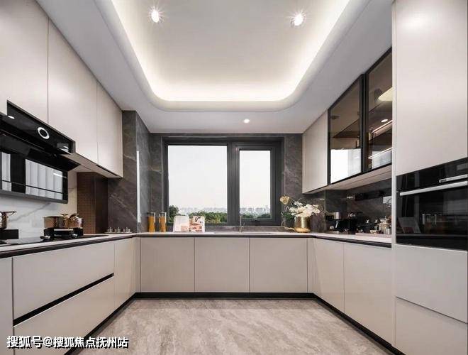 敞阔开放式U型厨房,洗涤区、烹饪区、冷藏区等空间划分明确,动线无缝衔接;西式岛台,中西厨兼备,自由切换的厨房模式让生活更惬意。