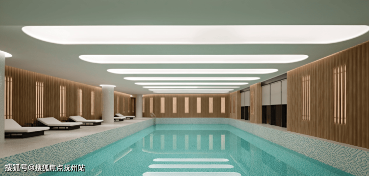 无界泳池:10X20米半标四季恒温泳池,下沉式庭院引入自然光景,马赛克砖与木饰面营造度假氛围,专业安全员全天守护。