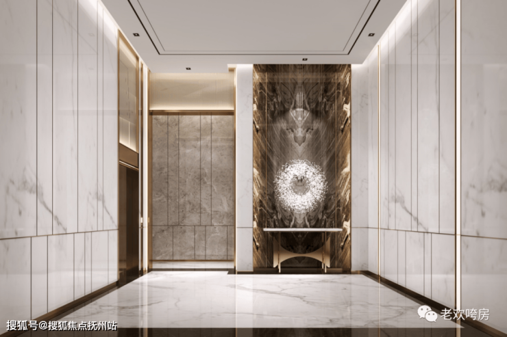 项目打造了地下车库精装大堂+首层入户约5.4米精装楼栋大堂,地下车库采用高级的大地色系,劳斯莱斯星空顶,豪宅范十足;楼栋入户大堂则采用维多利亚大理石打造,充满艺术感的摆件设置,将仪式感瞬间拉满。