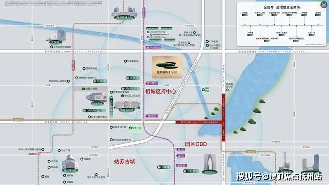 项目傲立于相城区政府旁,处于区政府中心、金鸡湖、姑苏古城交汇的珍稀地缘位置,行政资源、商业繁华与文化底蕴在此交融碰撞,形成强大的磁场效应。