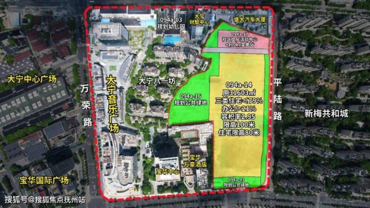 该项目位于大宁公园北侧、东临新梅共和城,占地面积约31603㎡,容积率2.95,限高100米(住宅高度不超高80米),计容面积约93229㎡,其中住宅占比≤79%,办公占比≥21%。