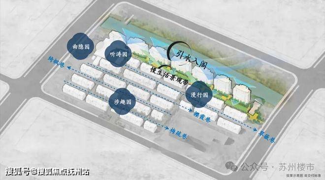 在园林打造方面,项目承袭计成造园理念“借景共融”,引太湖水入园,打造亲水架空泛会所,并以景观步道串连社区四重园林,取计成《园冶》景观命名,营造游园式度假归家体验。
