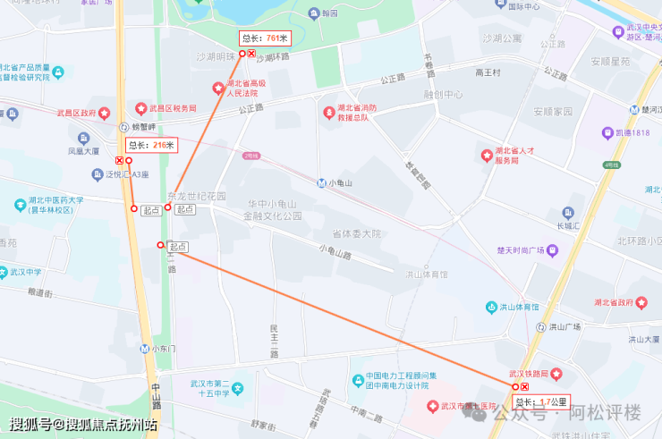 项目直线距离150米左右,2/7号线地铁站、泛悦汇昙华林商业,再远一点点约2公里左右是武汉SKP,步行也可达网红景点沙湖公园、小龟山、昙华林等,可以说非常成熟了。