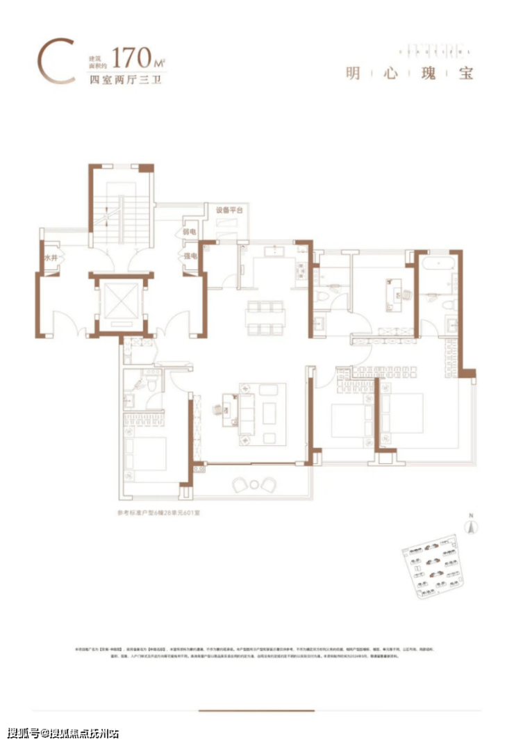 安高申陇院建面约170㎡四房两厅三卫,以突破性尺度成就区域改善之作,四房空间张弛有度,这不仅在于其房间数量,更在于对每一寸空间的规划所带来的整体舒适性与尊崇感。约79-80%的高得房率,让住宅的实际使用空间显著扩容。