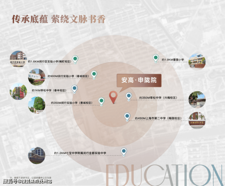 直线距离闵行区实验小学(景城校区)190米,直线距离莘松中学(兴梅校区)200米,还有闵行区实验小学、莘松中学,延续浓厚的书香文化底蕴。