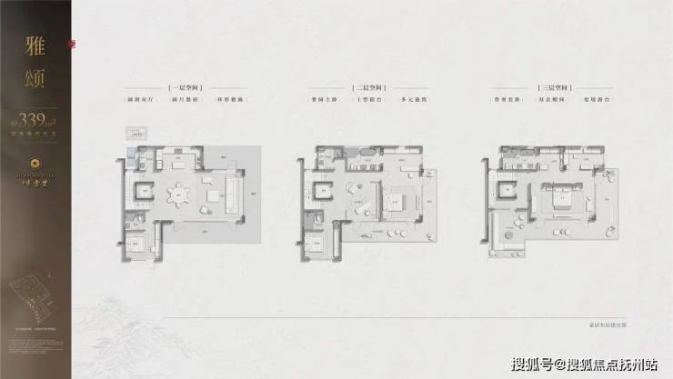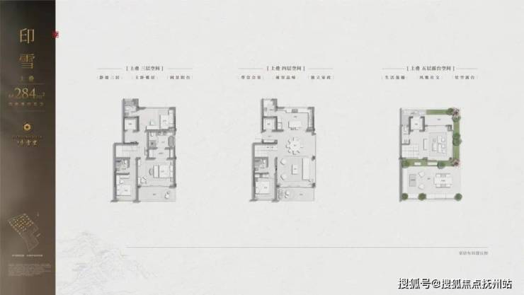 中间套300㎡地上三层双主卧套房设计,每间卧室连通露台或庭院;L型景观面实现“移步异景”。边套340㎡顶层阳光房与私家电梯入户,主卧独占整层,躺瞰超山梅花盛放,地下室可拓展为私人艺术馆。