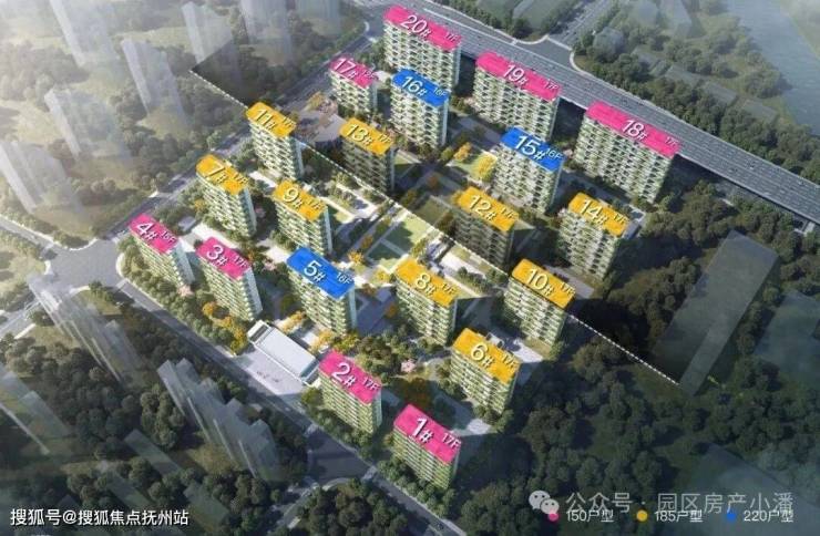 产品规划:建面约150㎡、185㎡、220㎡,户均约30-50㎡空中庭院