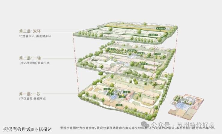 “立体景观芯”,下沉庭院复合型功能空间,非平面铺陈,目之所及皆是立体画境。