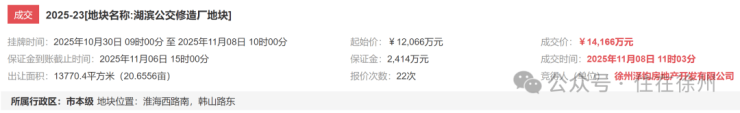 该地块是在去年11月8日,经过22轮竞拍,泽信1.4166亿抢下,溢价高达17.4%,楼面价8573元/㎡,是2025年徐州最贵的地块。