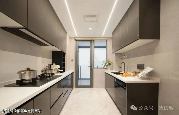 16项厨卫系统中,标配方太全隐升降款油烟机、三眼灶、15件套洗碗机。顶上有奥普凉霸,灶台有岩板背景墙,不只实用,还细致关照厨房的“清洁动线”。