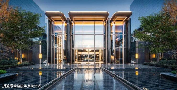 二进院平湖意境,跨水归家。在水景的设计上,设计希望用水的不同形态塑造不同的感官情绪。翡翠生活馆在造型上就已冲破了“天花板”,打造天津首座钻石立面业主会所。灵感源自世界豪宅,纽约Lantern House钻石立面,以多面切割工艺技法,为建筑凸窗倒入钻石切割面的光照与反射效果,犹如一颗璀璨的宝石。