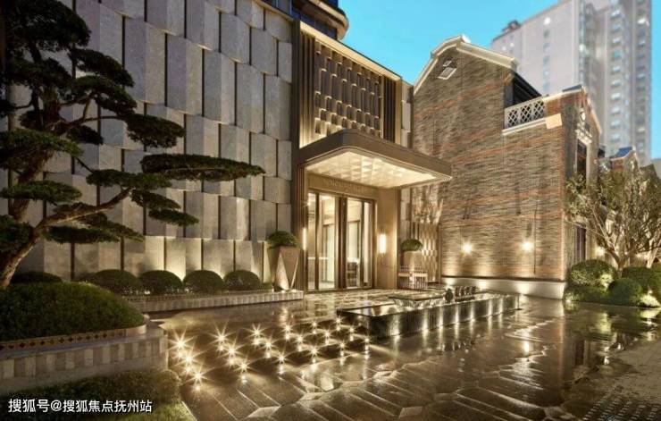 在整个社区的门户位置,保利永兴里采取了定制酒店式落客区、入口,参考了华尔道夫与安缦酒店的设计理念,一步一景,如同高定秀场。