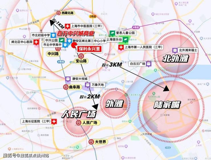 【交通】项目三轨环绕,最近8号线中兴路站,3/4号线宝山路站稍稍远一些,串联人民广场、陆家嘴,静安寺等中芯区域。自驾上,南北高架、北横通道,新建路隧道、人民路隧道、大连路隧道、延安东路隧道等加持,交通便捷,通达全城。
