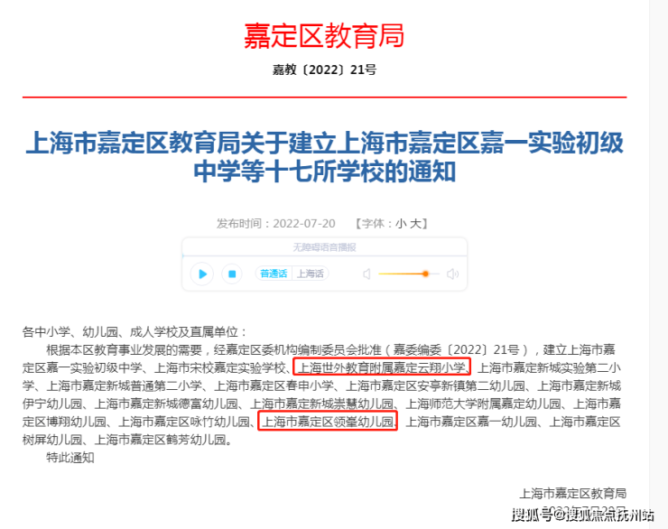 较新消息,据上海市嘉定区教育局官网发布:上海市嘉定区教育局关于建立上海市嘉定区嘉一实验初级中学等十七所学校的通知。
