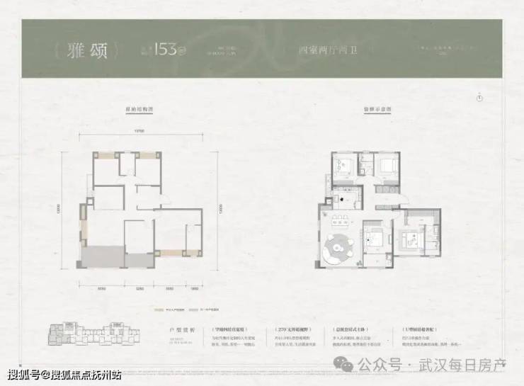5、准第四代住宅产品,得房率非常高!项目是在汉十条出来之后报规,户型产品主要是阳台按照最新标准设计,开间进深非常大,每个户型都有大量的飘窗,虽然是超高层,但整体得房率非常高,能达到85%。