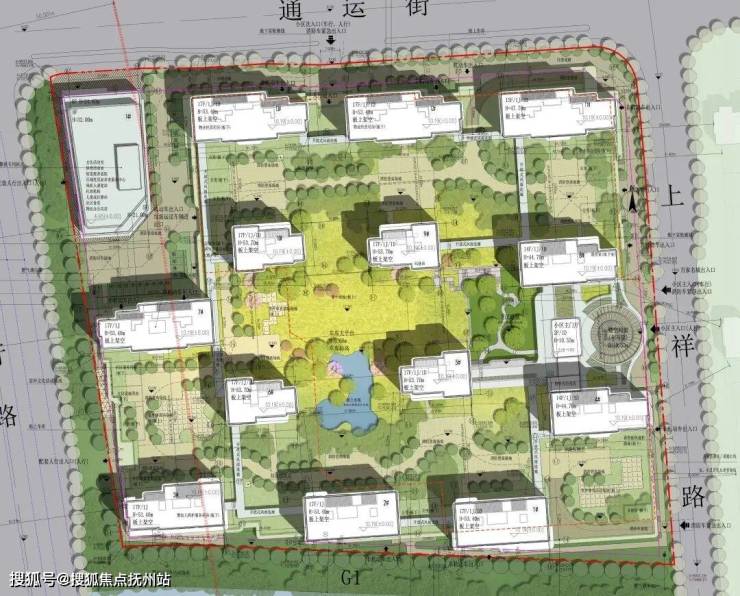 整体楼间距范围在30-40米左右,配套公建位于小区西北角,小区主入口则设于小区东侧上祥路。