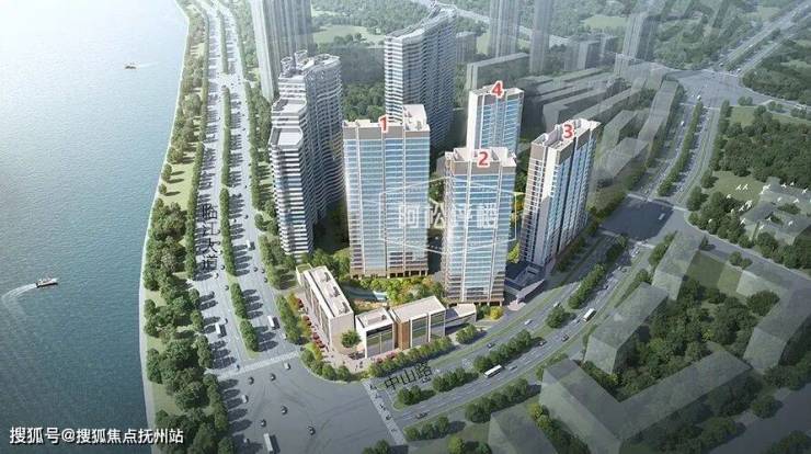 该项目一线临江,地块临江面为西面,且地块临江面很窄,住宅楼栋斜侧面对江。
