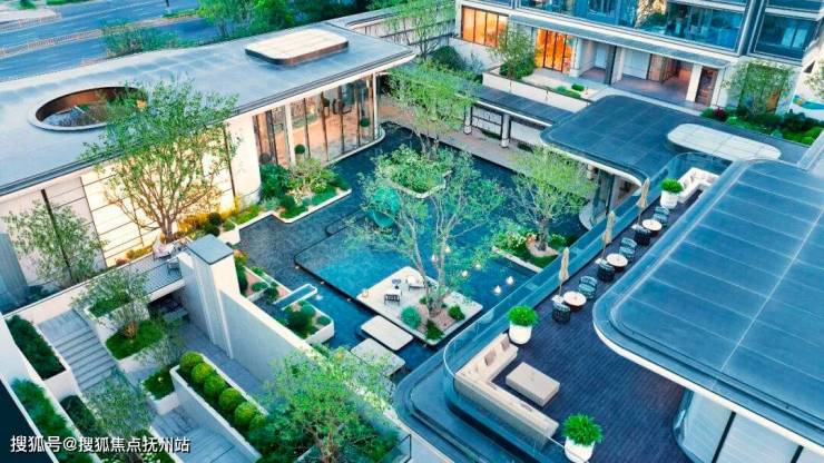 但对于抬升的做法,春来晴翠是更加「润物细无声」的,它用一段重金投入的归家水院,自然而然地完成了从大门入口到一楼架空层的转换。
