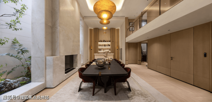 一楼,客厅到庭院是全景的落地门窗,夏日凉风习习,边套下叠还拥有全明餐厅。