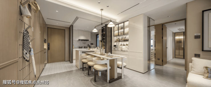 玄关S墙设计,同样包含MAX巨量收纳;创新性采用了钢琴键收纳,600万级的刚需项目中能享受大几千万的豪宅配置;