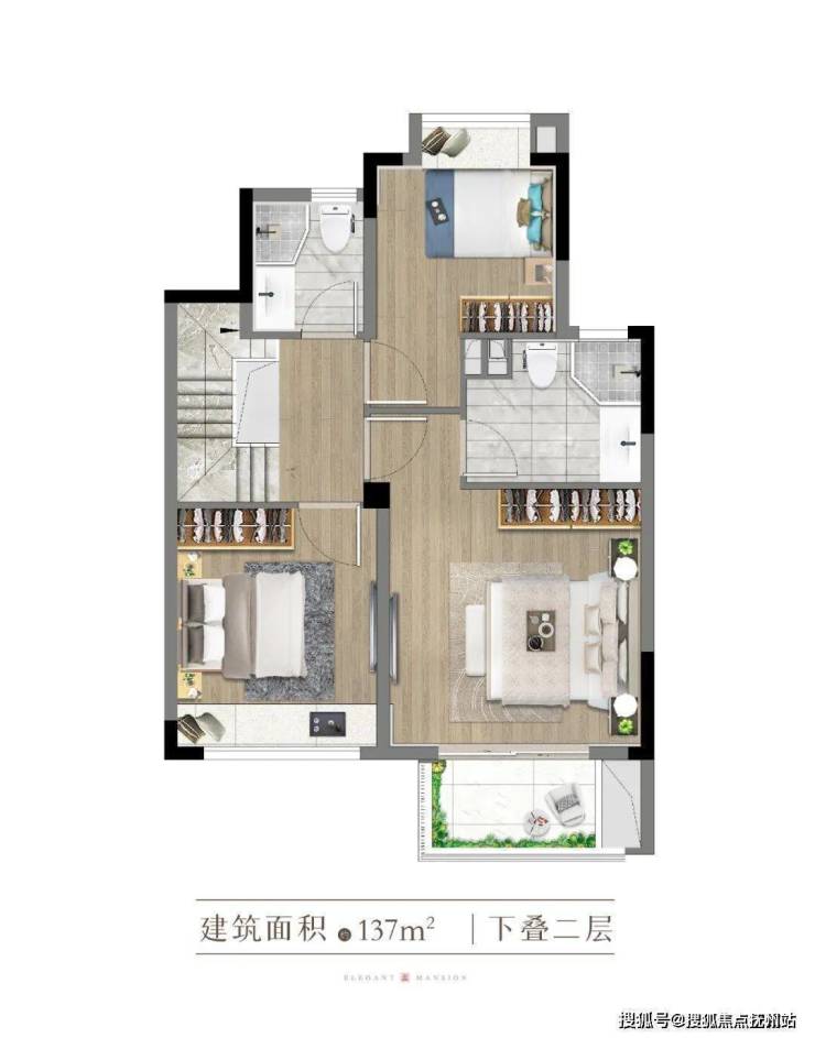 更有自带独立卫生间和衣帽间的主卧套房设计,保证了主人的私密性和舒适度。这样奢阔的尺度和高能配置一般只能在城央高端住宅以及别墅产品中能见到。