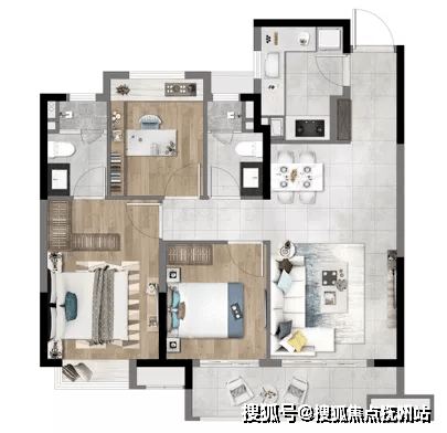 约86㎡罕见得做到三房两厅一卫,以科学设计兼顾了尺度、功能与流畅动线。