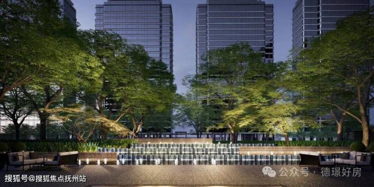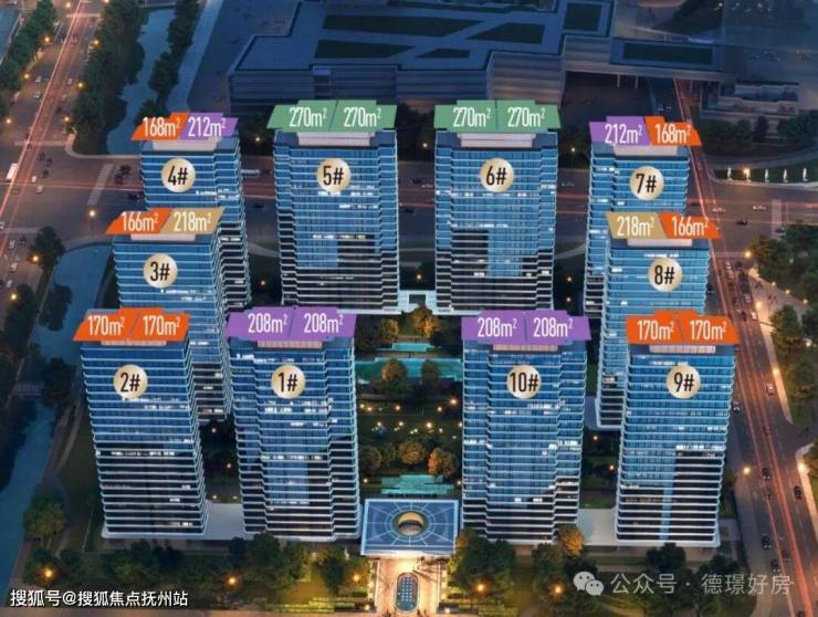 整体规划T2点式大围合布局,实现超万方围合大中庭、最大超百米楼间距等设计巧思。