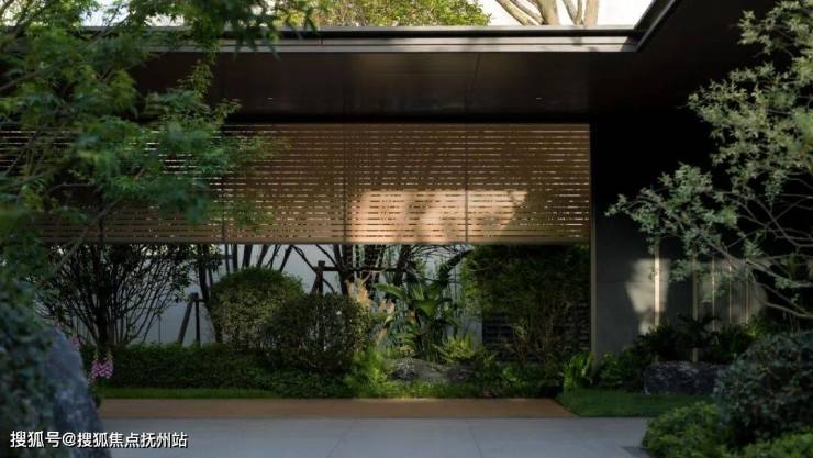 “醉森泉”中心庭院,取醴泉之境,打造林荫水庭空间。 园中新中式廊亭采用超薄盖顶,通透的立面让景观更好的渗入,庭前水流潺潺、石瀑清鸣,于都市山林中造自然野趣,感受隐逸的诗意生活。