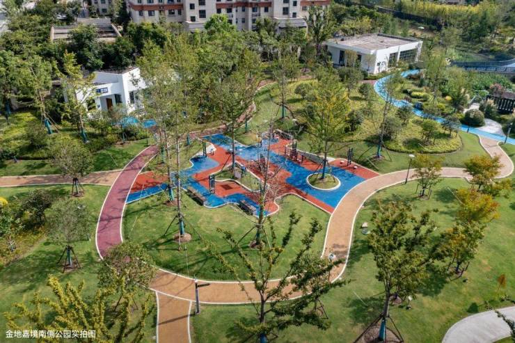 金地嘉境以住假式花园住区为设计理念打造社区内部的景观和空间,让业主能够享受到度假般的居住和生活体验。景观不再是单纯的停留休憩,而是为更多有趣味、有温度的社区活动提供场景。小区景观通过2轴5巷的空间排布,分为纵横十字景观轴网格式排布,汇聚多样化、多年龄段活动场地,营造一个有艺术的、充满生机的活力居所。