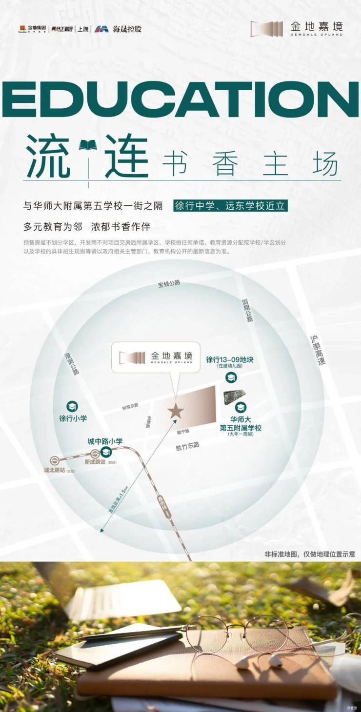 与华师大附属第五学校一街之隔,近邻徐行中学、远东学校,书香氛围浓郁(仅列举项目周边学校名称,不作对口承诺,学区划分最终以教育局公布为准)