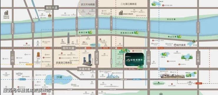 武昌滨江商务区南起长江大桥中山路,衔接武昌古城,北至二七长江大桥,东边连接华中金融城,绿城·梧桐里正在这个范围之内。