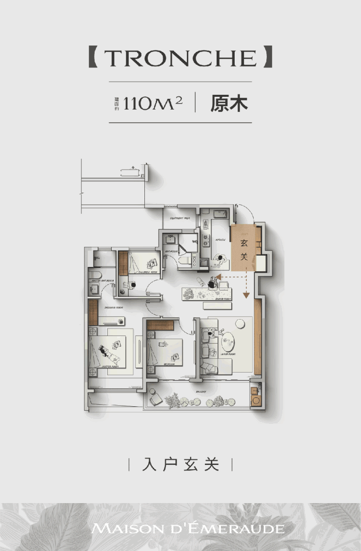 全屋约14.6米大面宽的尺度,让三个卧室都能够直面南向采光,实现阳光平权。主卧是豪华套房,除了飘窗、独卫外,由于空间够大,不论是衣帽间的梳妆打扮,临时办公等,也都能在主卧空间内实现。