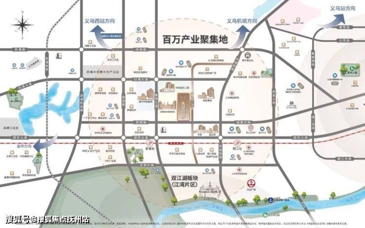 项目位于稠江街道核心发展区,金义都市圈主轴,列入《义乌国土空间规划》「主城区 -双江湖副城」发展轴,享土地/税收双重政策倾斜。这里属于义乌规模企业最密集区域,毗邻产投93万高新产业园,四海大道工业区和多个产业园环绕,超百家企业集聚,爱美莱、卡游(总投资10亿元/2026年一季度投产)等园区遍布周边。产业高地,虹吸人才,人气流量高地。