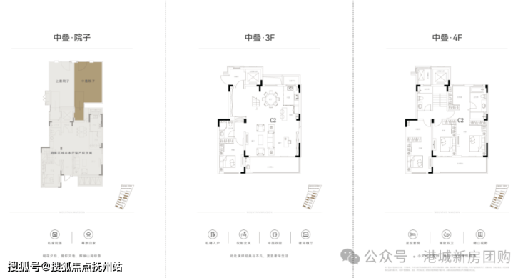产品特色:上中下 叠墅全部都有入户花园。下叠赠送70平左右南向庭院、中叠及上叠赠送北向35-40平庭院(合同体现)