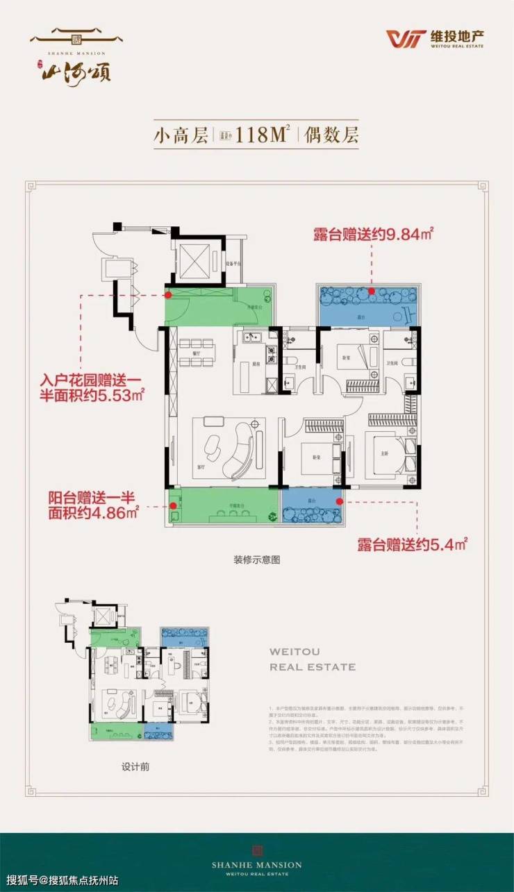 ★建面约118㎡:超高得房率,户户有露台,媲美市场160㎡户型