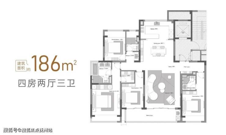 中建国际的"好设计"始终坚持以人为本,系统响应真实居住需求,创新采用南向四开间与双套房布局,最大化采光与视野。户型设计融合海外高端住宅效率理念,如运用30°坡度吊顶、曲线围合等手法,提升空间质感。建筑由日清设计操刀,景观由朗道国际融合东西方美学,实现“西形中魂”的意境融合。项目推出建筑面积约164m²、186m²、239m²三种户型,以精工细筑打造品质精装,例如: