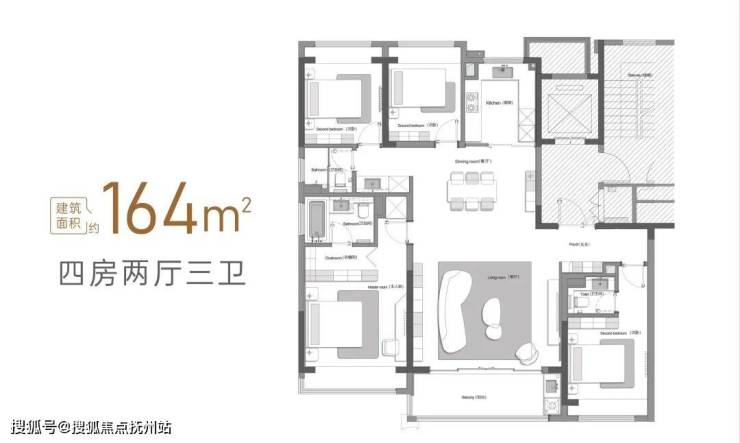 • 珑月(约164m²):四室两厅三卫,方正格局,南向双套房,全明厨房;