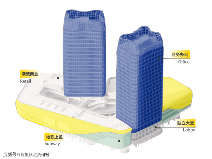 项目商业综合体针对办公人群和周边家庭消费群体提供全时段的消费场景,业态涵盖精品咖啡茶饮、美食、数码、服装零售、影音娱乐、形象管理、健康疗愈、亲子互动等10多个业态,构建一站式品质生活圈。
