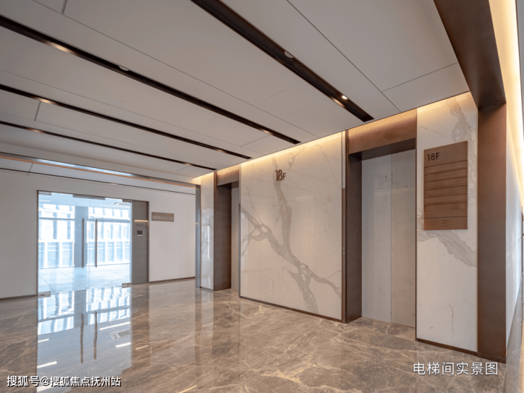 项目配置精装商务大堂和星级酒店式落客区,首层大堂面积约200多㎡且挑高设计,为企业带来良好的门面形象和优雅的出入体验。室内公区部分则以暖色石材、高档面砖搭配金属饰边装饰,营造出温润细腻的空间质感,于细节处彰显高阶商务品质。