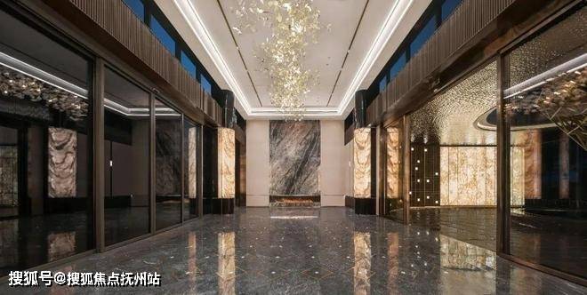 比如精装的地下大堂,流淌着雅奢的艺术感,搭配高奢石的景墙,堪比星级酒店,带给业主归家的尊贵感。
