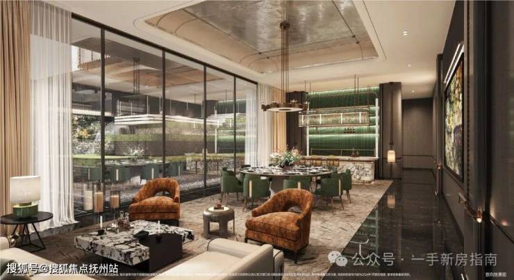 设计师以东方摩登韵味打造双重下沉庭院,以高规格规划约4000方会所,集月华阁、健身中心、私宴及共享餐厅、行政酒廊、瑜伽馆、壁球馆、室内全龄恒温泳池为一体,以及高层全架空主题空间,完善全龄乐动的生活体系。
