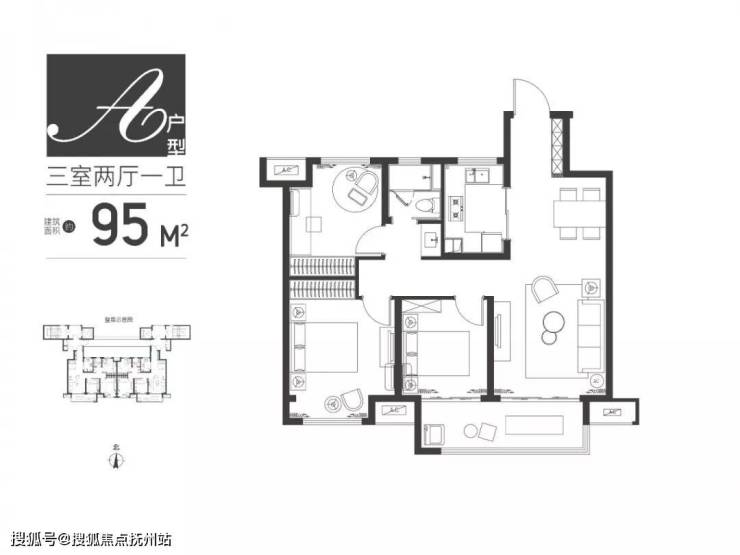 建筑面积约95㎡2+1创新户型