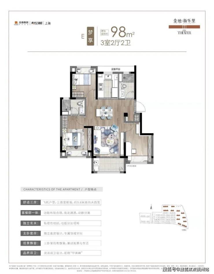 项目小高层主力户型为建面约91㎡的3房2厅1卫、建面约98㎡的3房2厅2卫,总价约300万级。