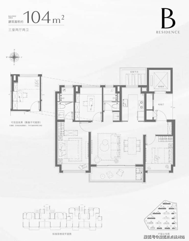 谁不想拥有大横厅,百平米内也能做到!招商中旅·揽阅的104平户型可以说是满满的诚意品质担当。