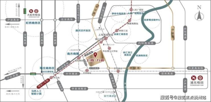 还有 三座枢纽交通,交通优势明显: 铁路上海南站(项目东北侧约4公里,车程9分钟)、 虹桥交通枢纽(项目西南侧约18公里,车程25分钟)、 浦东交通枢纽(项目东侧约33公里,车程40分钟)。