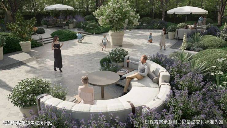 “回归之境”以3500㎡下沉水苑为核心,汇聚会客、泳池、茶室等多功能空间,形成仪式感十足的社区舞台。